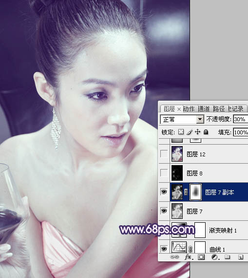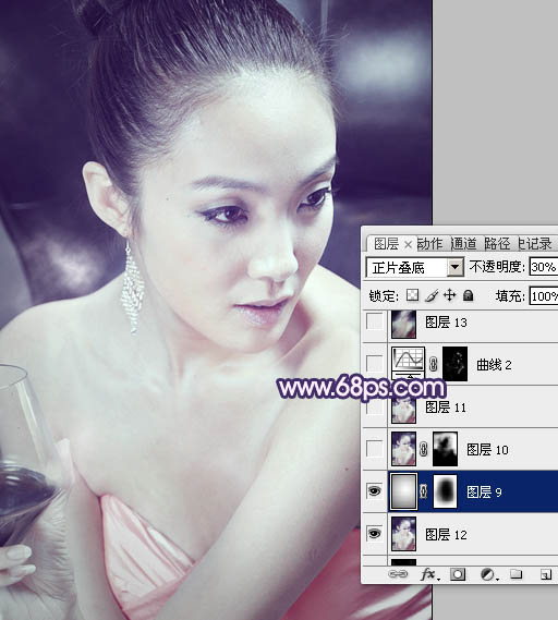 Photoshop调出室内美女图片光亮的粉紫色(9)