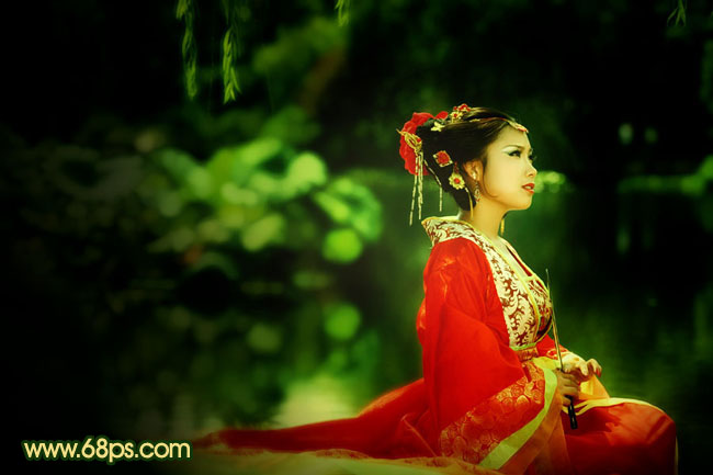本教程介绍暗调外景人物图片调色方法。大致过程:先把图片整体色调压暗,背景部分可以适当模糊处理,再适当用调色工具调出主色。然后把人物部分调亮即可。