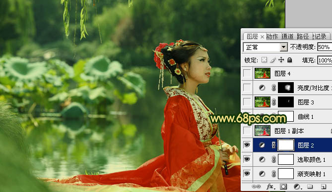3、按Ctrl + J 把当前可选颜色调整图层复制一层,图层不透明度改为:50%,效果如下图。