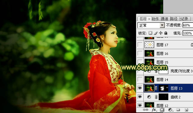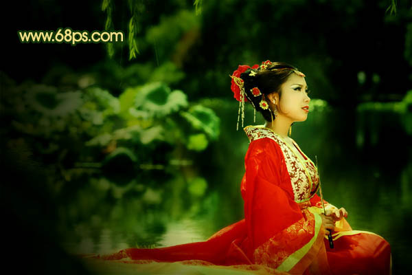 Photoshop调出外景人物图片古典暗绿色(9)
