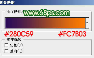 4、创建渐变映射调整图层,颜色设置如图5,确定后把图层混合模式改为“滤色”,不透明度改为:10%,效果如图6。