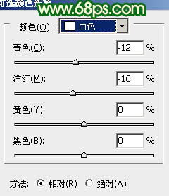 5、创建可选颜色调整图层,对红,黄,绿,白,中性色进行调整,参数设置如图7 - 11,效果如图12。