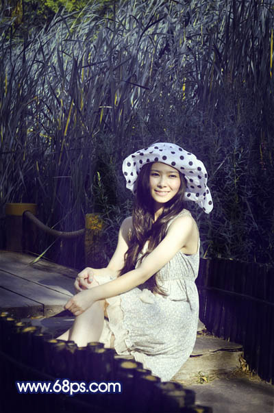 Photoshop打造暗调青紫色外景人物图片(9)