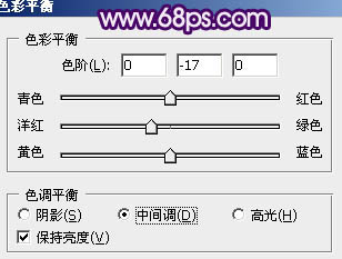 3、创建色彩平衡调整图层,对中间调及高光进行调整,参数设置如图4,5,效果如图6。