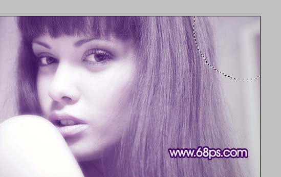 12、新建一个图层,图层混合模式改为“滤色”,把前景颜色设置为:#45166C,用画笔把图22所示的选区部分涂上颜色,效果如图23。