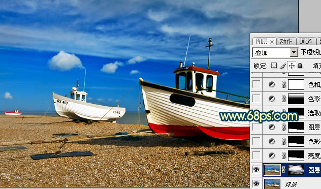 1、打开原图素材,按Ctrl + J 把背景图层复制一层,图层混合模式改为“叠加”,加上图层蒙版,用黑色画笔把不需要加强的部分擦出来,效果如下图。