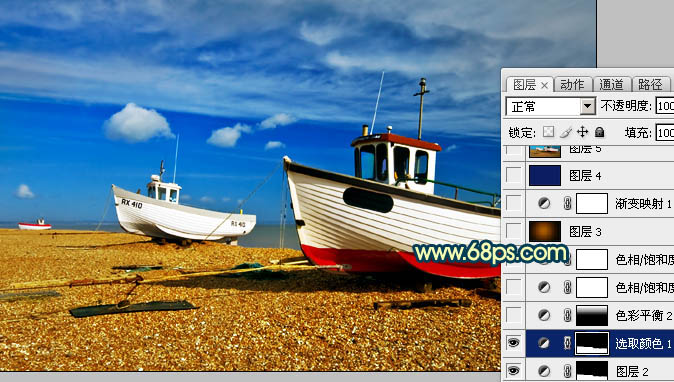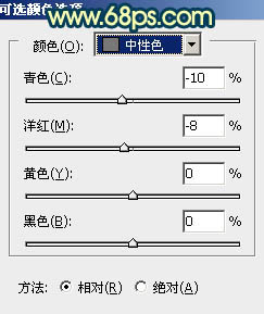 4、调出当前图层蒙版选区既沙滩部分的选区,创建可选颜色调整图层,对黄,中性色进行调整,参数设置如图8,9,效果如图10。