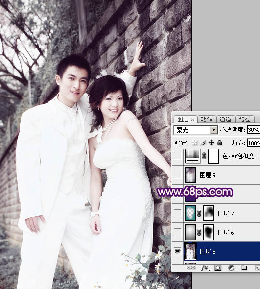 Photoshop打造古典暗调蓝紫色外景婚片(5)