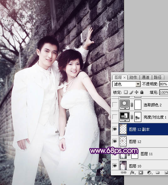 Photoshop打造古典暗调蓝紫色外景婚片(8)