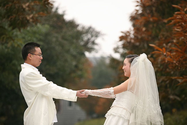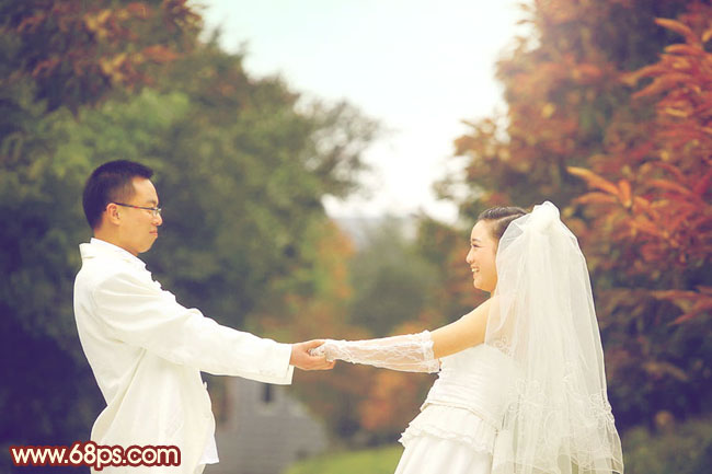 本教程介绍较为温馨的淡红色婚片润色方法。大致过程:先用调色工具把画面的主色调成淡淡的橙红或淡红色。然后用渐变映射及图层叠加等加上一些补色,再适当柔化处理皆可。
