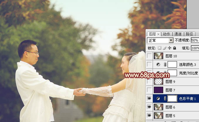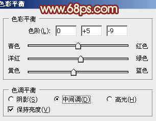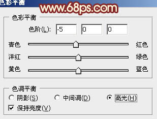 10、创建色彩平衡调整图层,对中间调及高光进行调整,参数设置如图17,18,确定后把图层不透明度改为:50%,效果如图19。