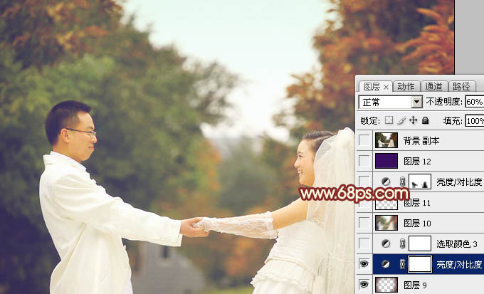 12、创建亮度/对比度调整图层,参数设置如图21,确定后把图层不透明度改为:60%,效果如图22。