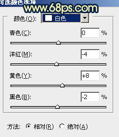 14、创建可选颜色调整图层,对白色进行调整,参数设置如图23,效果如图24。