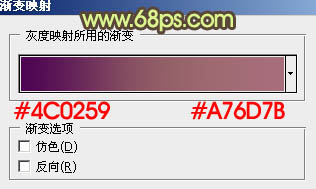 4、创建渐变映射调整图层,颜色设置如图7,确定后把图层混合模式改为“变亮”,效果如图8。