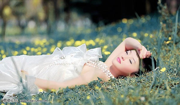 PS调出草地上的美女照片暗调青绿色(2)