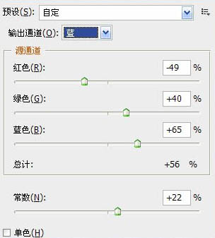 6、建立通道混合器图层,分别对三个图层进行调整,参数如图: