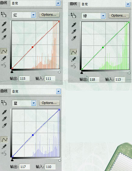 4、新建曲线调整图层,对个通道进行调整,参数设置如下图。