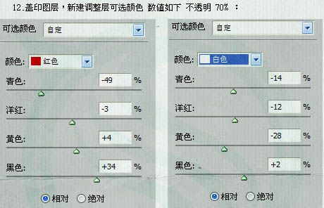 13、新建可选颜色调整图层,参数设置如下图。确定后把图层不透明度改为:70%,效果如下图。