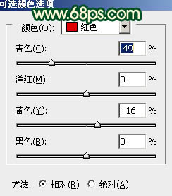 3、创建可选颜色调整图层,对红,黄,绿,中性色进行调整,参数设置如图7 - 10,效果如图11。