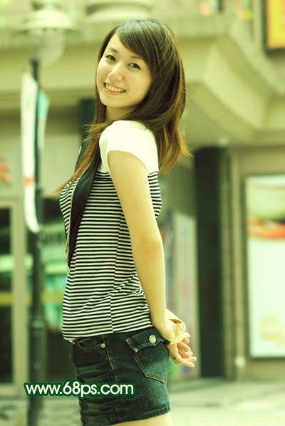Photoshop调出外景人物图片甜美的黄绿色(4)