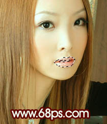 7、用钢笔把人物嘴唇部分抠出来,按Ctrl + Alt + D 羽化1个像素后创建色彩平衡调整图层,稍微调红一点,效果如图18。