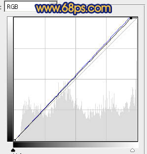 7、创建曲线调整图层,对RGB及蓝色进行调整,参数设置如图14,确定后只保留人物脸部及肤色部分,其它部分用黑色画笔擦掉,效果如图15。