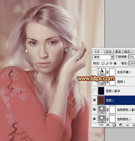 Photoshop调出人物图片高雅纯美的淡红色(4)