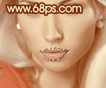 12、用钢笔勾出嘴唇部分的选区,如图26,按Ctrl + Alt + D 羽化1个像素后创建色彩平衡调整图层,参数设置如图27,效果如图28。