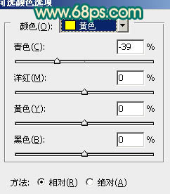 5、创建可选颜色调整图层,对红,黄,青进行调整,参数设置如图13 - 15,这一步主要是把人物脸部调红润,并适当加强背景部分的青色调,效果如图16。