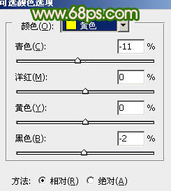 3、创建可选颜色调整图层,对红,黄,绿,青,白进行调整,参数设置如图6 - 10,这一步操作目的是加强人物脸部及背景色调,效果如图11。