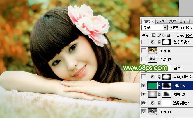 Photoshop调出人物图片粉嫩的橙绿色(10)