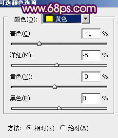 1、打开原图素材,创建可选颜色调整图层,对黄,绿进行调整,参数设置如图1,2。这一步是调整背景部分的颜色,效果如图3。