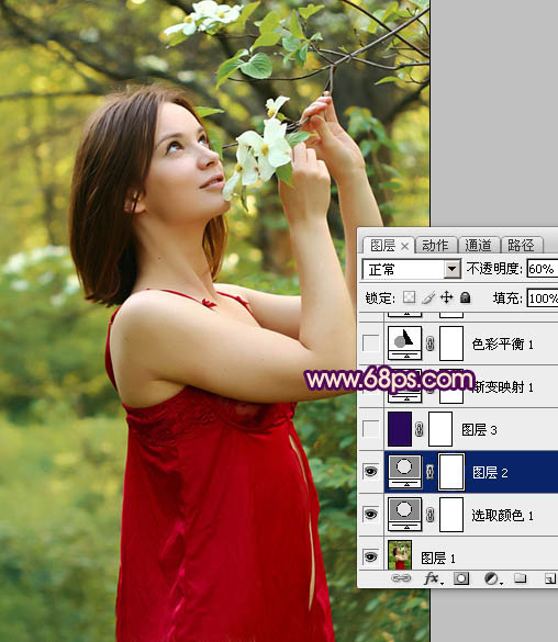 2、按Ctrl + J 把当前可选颜色调整图层复制一层,图层不透明度改为:60%,加强一下背景颜色,效果如下图。