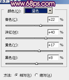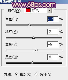9、再创建可选颜色调整图层,对红,黄,绿,蓝进行调整,参数设置如图18 - 21,确定后把图层不透明度改为:60%,效果如图22。