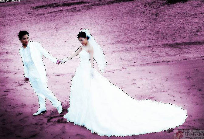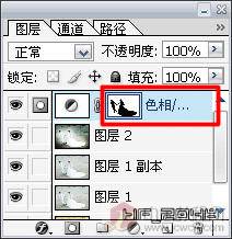 7、现在我们就把人物用"多边形套索工具"选出,然后选中"色相/饱和度"调整层旁的蒙板,并填充黑色。(这里涉及到蒙板的概念,关于蒙板已经有很多教程了,这里我不多说了)