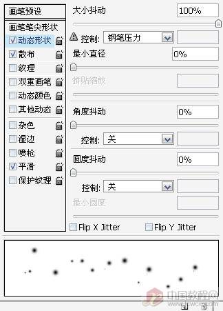 10、再设置一种星星笔刷(如图),也是在人物周围拖动(如图)。(这时的画笔不透明度设为100%)