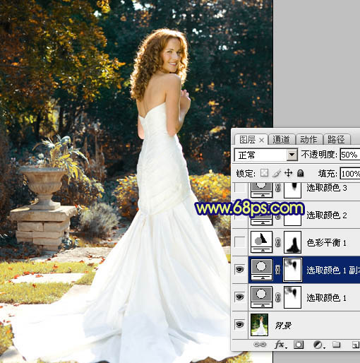 2、按Ctrl + J 把当前可选颜色调整图层复制一层,图层不透明度改为:50%,加强一下背景部分的颜色,效果如下图。