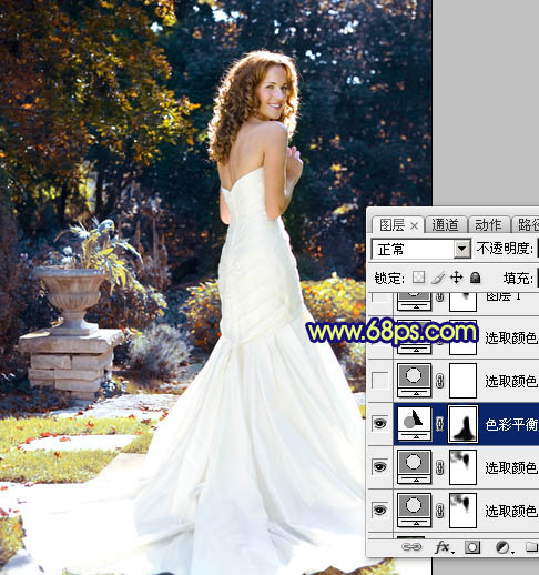 Photoshop调出外景人物图片深蓝的秋季色(3)