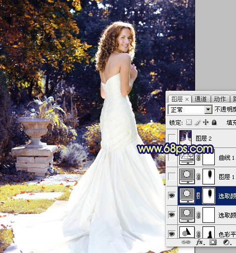 Photoshop调出外景人物图片深蓝的秋季色(5)