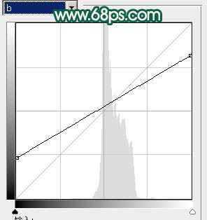 8、创建曲线调整图层,对明度及b通道进行调整,参数设置如图23,24,效果如图25。