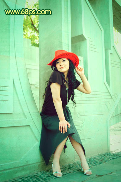 Photoshop调出外景人物图片甜美的青绿色(10)