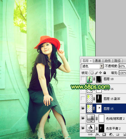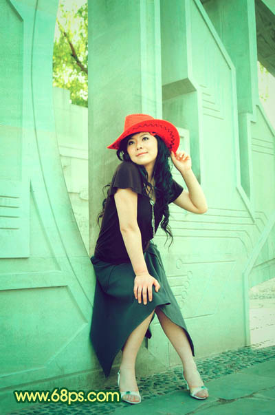 Photoshop调出外景人物图片甜美的青绿色(11)