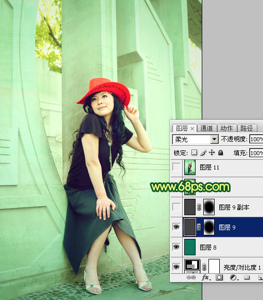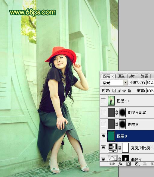 Photoshop调出外景人物图片甜美的青绿色(9)