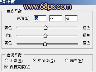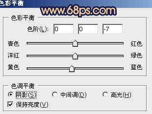 3、创建色彩平衡调整图层,对阴影,中间调,高光进行调整,参数设置如图8 - 10,确定后用黑色画笔把人物衣服部分曝光过度的部分擦出来。这一步稍微调整一下整体颜色,效果如图11。