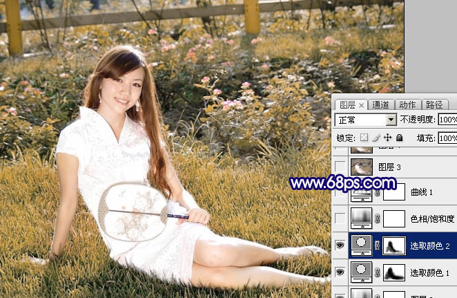 Photoshop调出外景人物图片古典暗调蓝褐色(4)