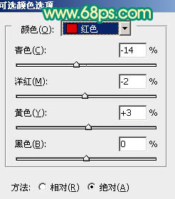 16、创建可选颜色调整图层,对红色进行调整,稍微把人物肤色调红润一点,效果如图36。