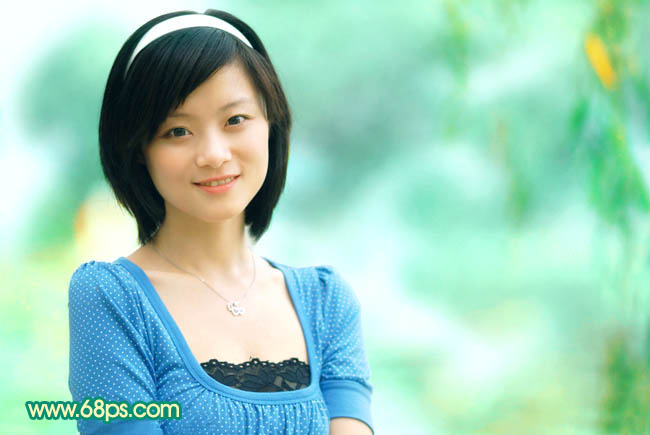 Photoshop调出外景人物图片清爽甜美的青绿色(11)