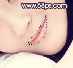 11、用钢笔工具把人物嘴唇部分抠出来,如图20。转为选区后按Ctrl + Alt + D 羽化1个像素后创建色彩平衡调整图层,参数设置如图21,效果如图22。