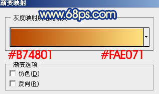 8、创建渐变映射调整图层,颜色设置如图22,确定后把图层混合模式改为“强光”,图层不透明度改为:10%,如图23。