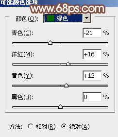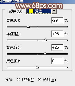 3、创建可选颜色调整图层,对黄,绿,中性色进行调整,参数设置如图5 - 7,确定后用黑色画笔把人物脸部及肤色部分擦出来,效果如图8。
